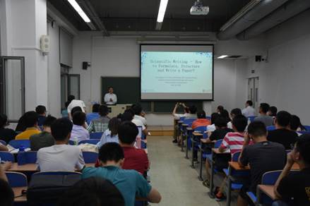 接着,奥大利亚昆士兰院士袁志国作了题为《Science writing-How to formulate,structure and writing paper?》的报告,袁志国院士是世界著名澳籍华人科学家,1992毕业于中国北京航空航天大学,现为澳大利亚昆士兰大学终身教授、博士生导师,澳大利亚昆士兰大学高级水研究中心(AWMC)主任,澳大利亚技术科学与工程院院士 (FTSE),国际污水营养物生物处理和排水管道系统管理领域著名专家。本次报告会中,袁院士向我们介绍了学术写作的技巧和注意事项,强调写作要突出亮点,面向读者,让我们写作的时候一定记得“You are writinga paper for other to read !”。